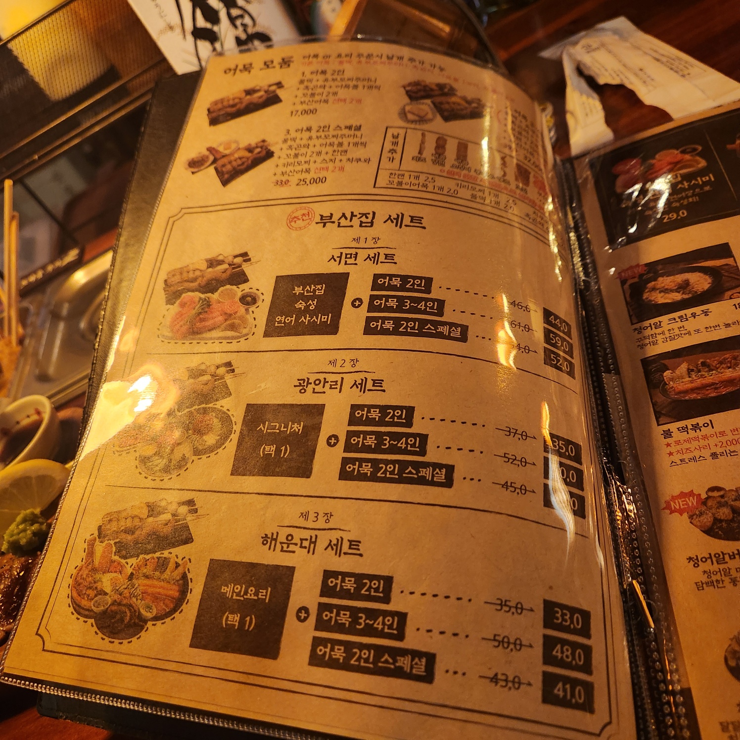 | 광안리 세트 | 어묵 2인 + 시그니처 택1 | 35,000원 | ⭐⭐⭐⭐ | 가성비 좋음 |