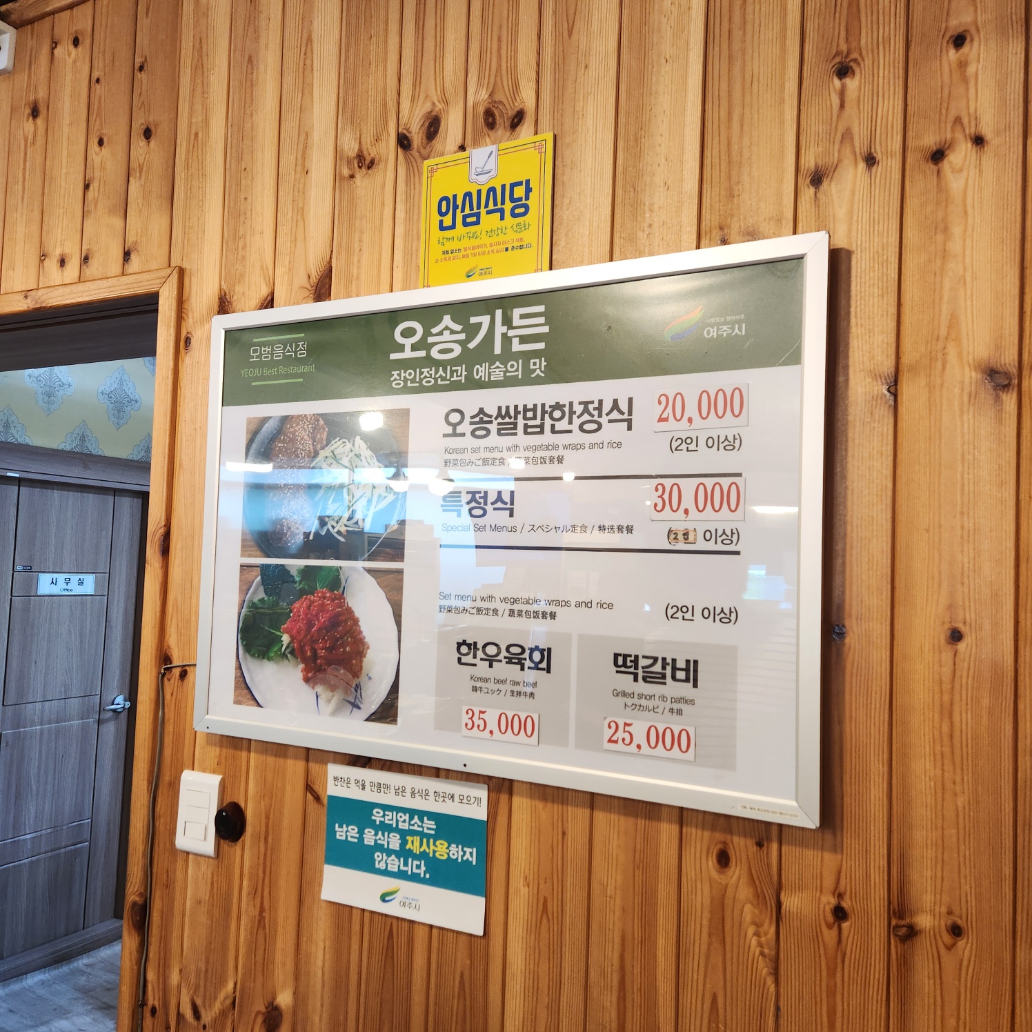 여주 특유의 "여주 쌀밥한정식" 간판도 정감있고, 특히 오송가든이라는 간판 글씨체가 참 예쁘더라고요! 마치 할머니 댁에 놀러간 듯한 포근한 느낌을 주는 곳이에요. 🏡