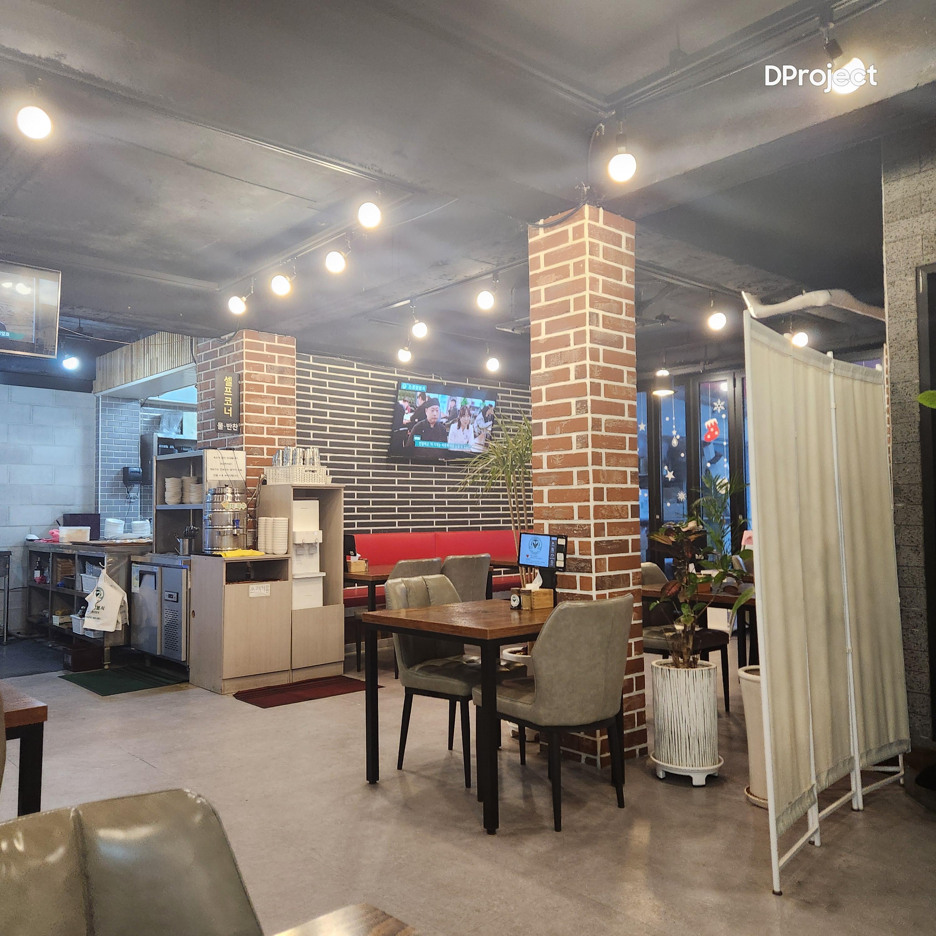 매장 내부는 모던한 브릭 인테리어로 꾸며져 있어서 생각보다 세련된 분위기예요! 🧱 넓은 테이블과 편안한 의자가 배치되어 있고, 혼자 와도, 친구들과 와도 편하게 식사할 수 있는 공간이에요.
