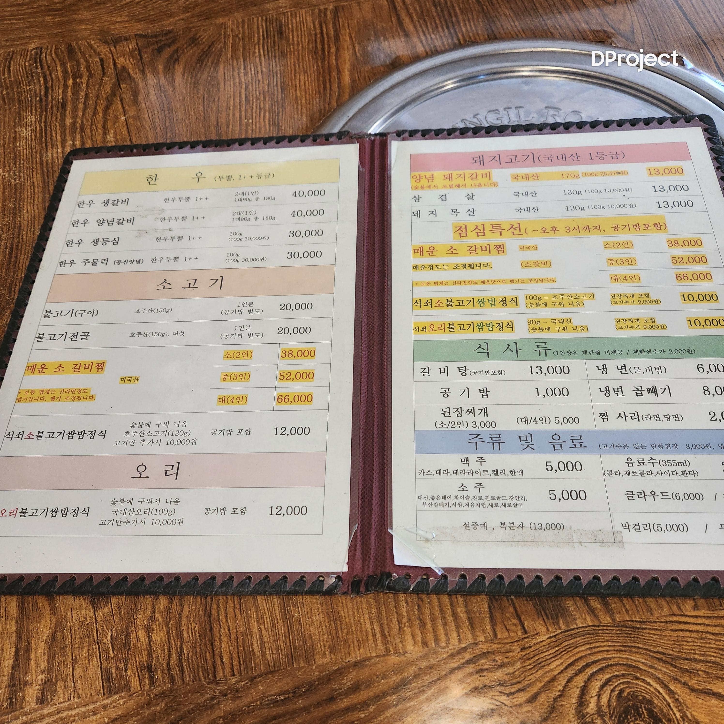 | 불고기(구이) | 20,000원 | ⭐⭐⭐⭐ |