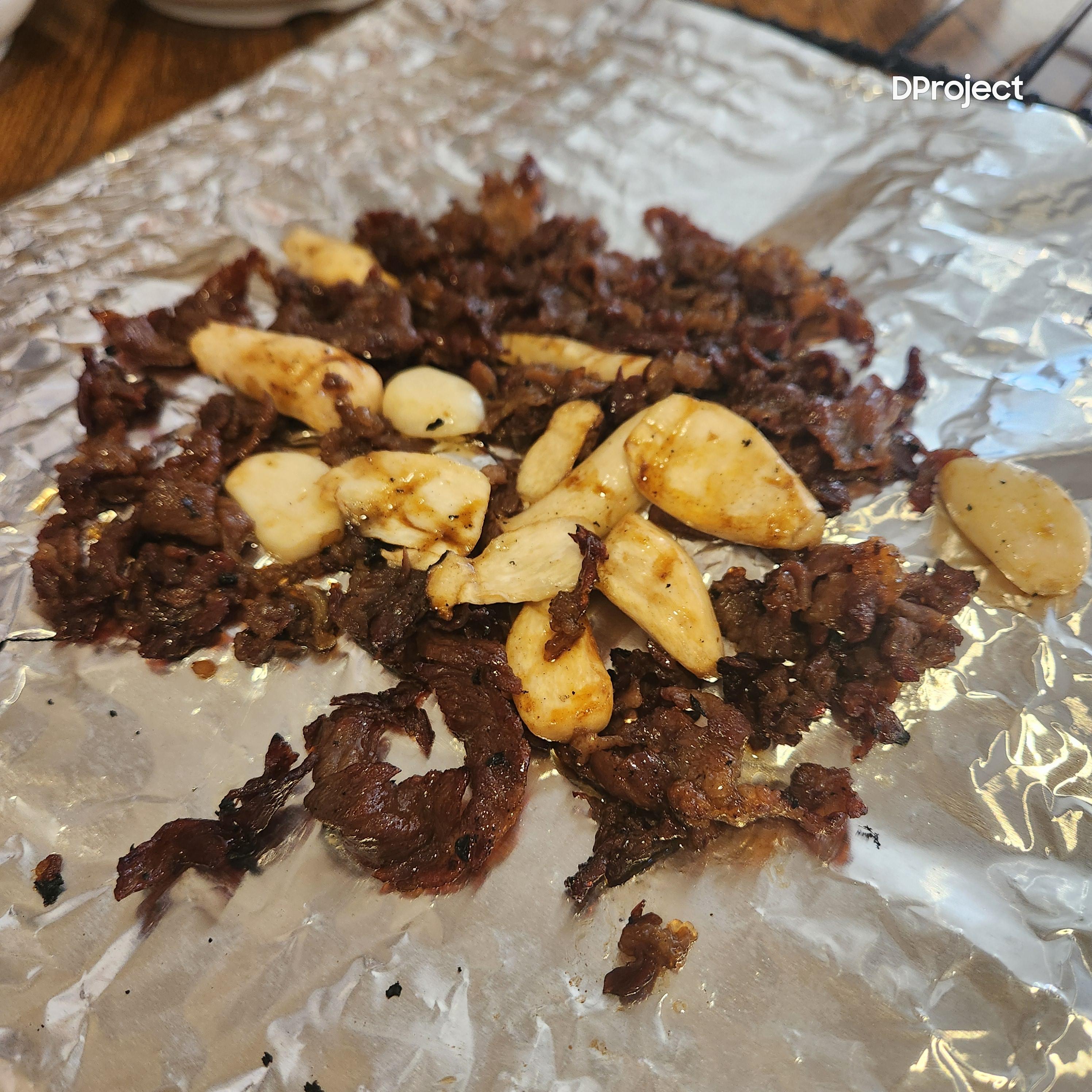 "마늘과 함께 구워진 고기 한 점... 이게 바로 숯불구이의 진짜 맛이구나 싶어요!" 😋
