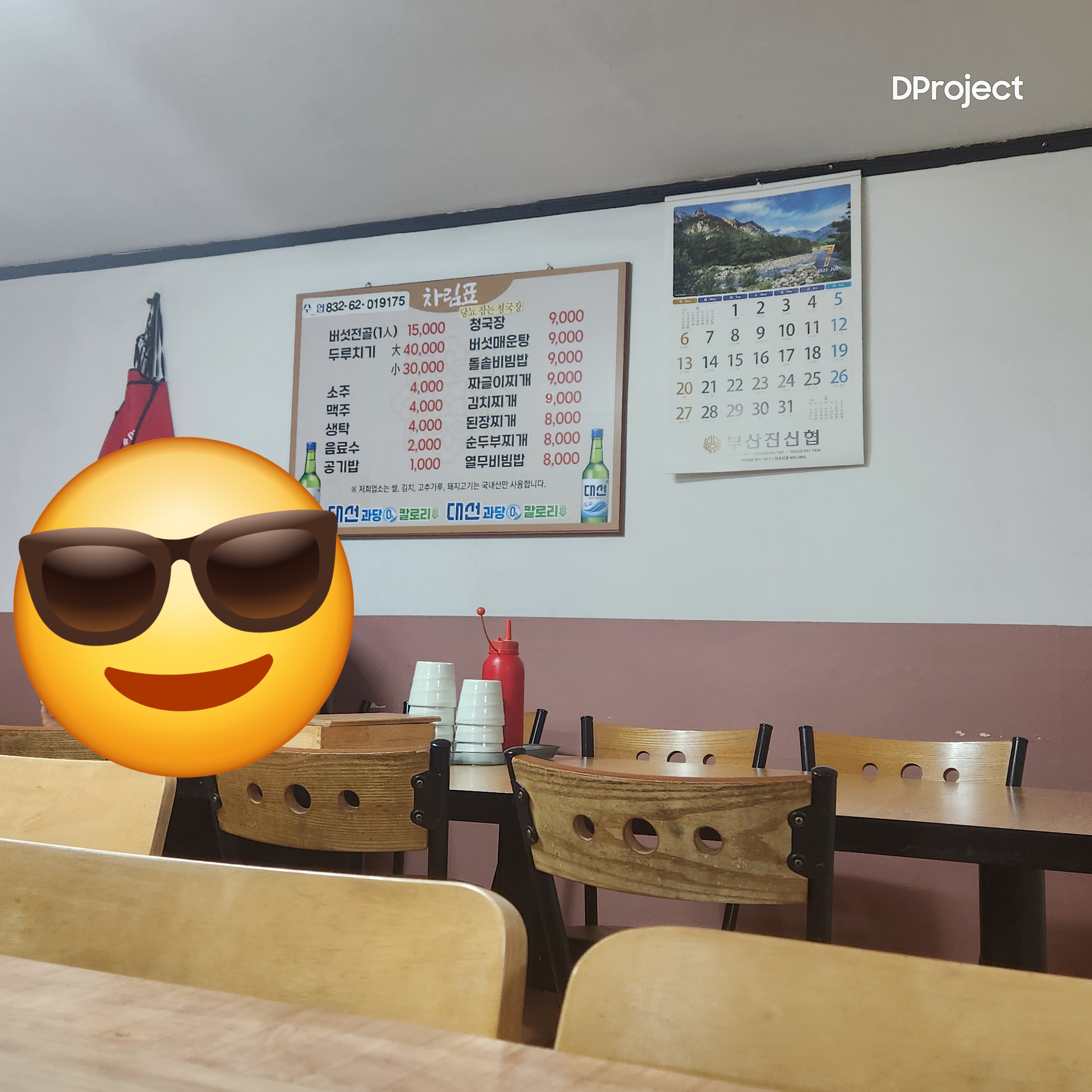 | 주요메뉴 | 버섯찌개, 순두부찌개, 청국장 |