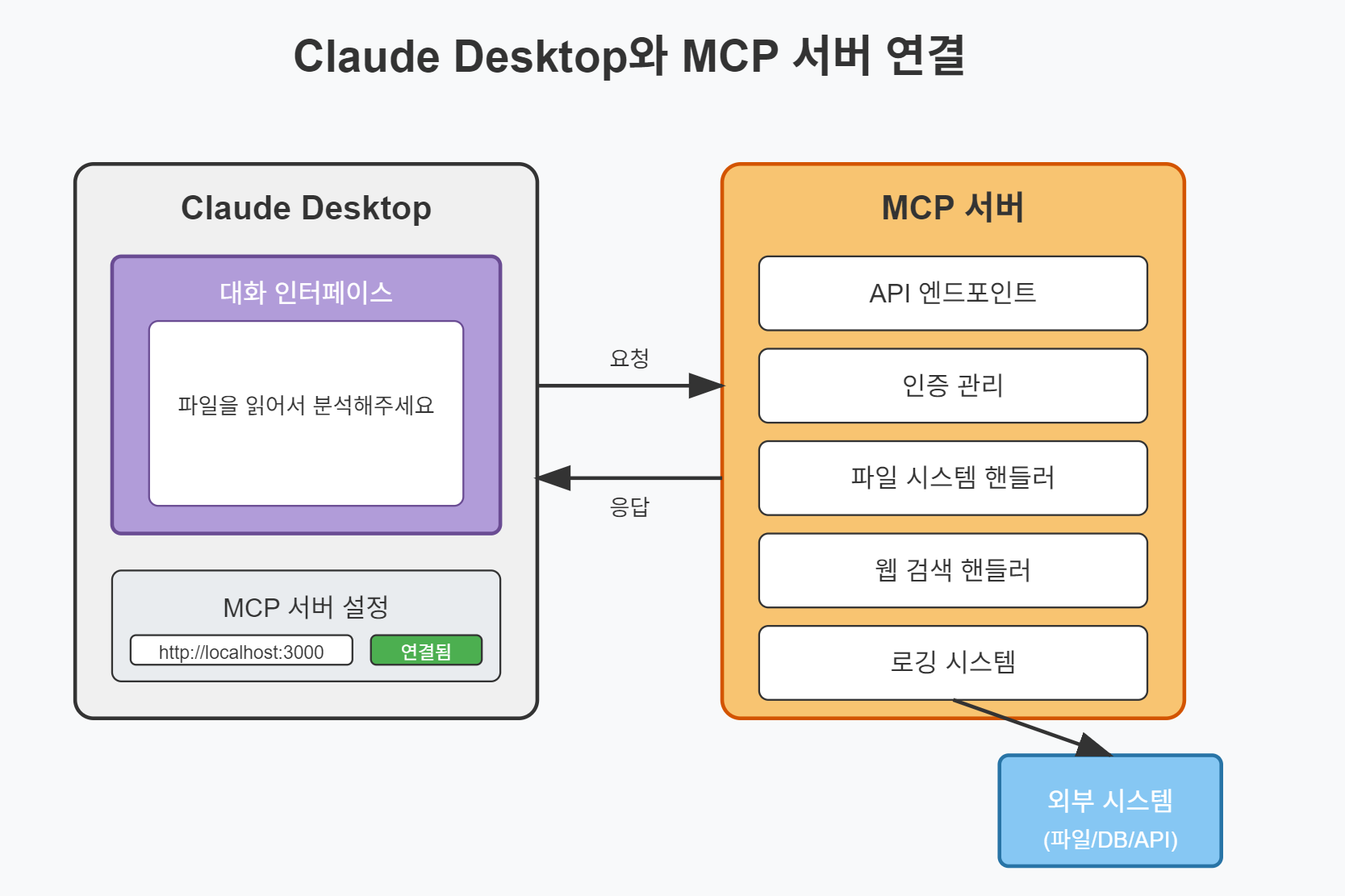 MCP 서버는 Claude와 외부 시스템 사이의 중개자 역할을 합니다. 서버는 크게 다음과 같은 구성요소로 이루어져 있습니다: